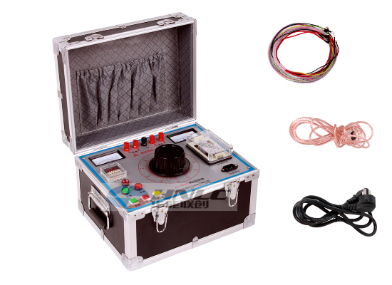 4、具有0.75倍電壓換算,方便測(cè)試氧化鋅避雷器,輕輕一按無須計(jì)算。本儀器控制箱上有75%的電壓功能鍵,在做避雷器試驗(yàn)時(shí),當(dāng)電流升到1000uA時(shí)、就按下0.75UDC--1mA的按鈕,這時(shí)電壓表、電流表所顯示的值就是75%的數(shù)據(jù),做完后應(yīng)立即將調(diào)壓電位器回到零位,并應(yīng)立即按綠色按鈕,切斷高壓并關(guān)閉電源開關(guān),再做其它的試驗(yàn)。