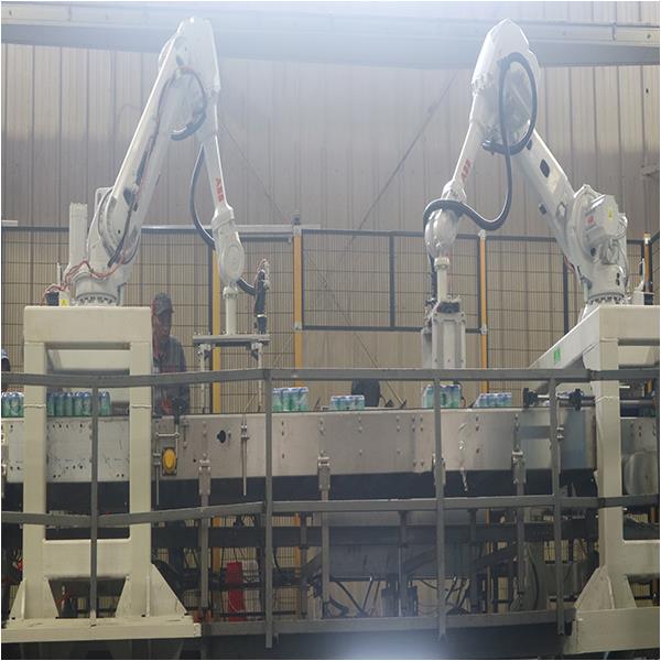 適用于方形磚包和玻璃瓶的緩沖輸送平臺(tái),產(chǎn)能可達(dá)30000BPH.